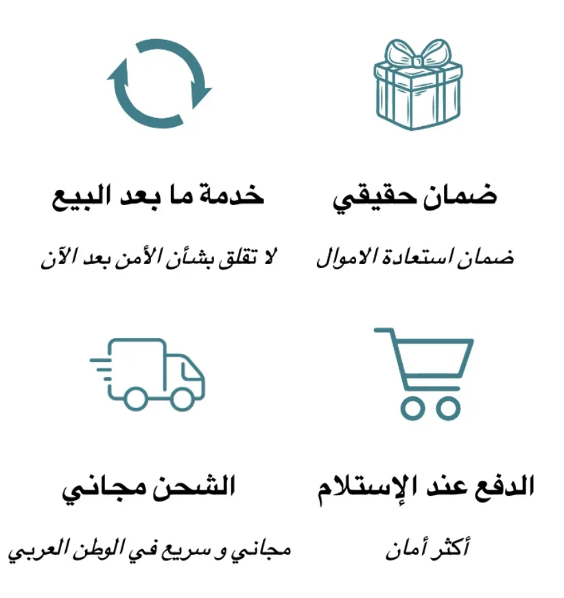 جميع المنتجات المعروضة في متجرنا تخضع لسياسة الاستبدال واسترداد الأموال وفقًا للشروط والأحكام المبينة على هذه الصفحة.